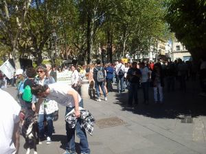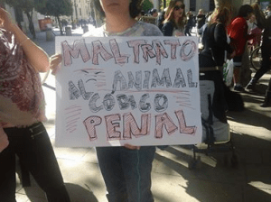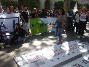 Miles de gargantas desgañitándose con lemas tales como, entre otros: «Derechos ya para los animales», «Respeto ya para los animales», «Justicia ya para los animales», «El maltrato animal, al Código Penal», «La Fiesta Nacional, al Código Penal», «Sevilla animalista», «Sevilla libre de maltrato animal», «No están solos, somos su voz», entre un larguísimo etcétera.