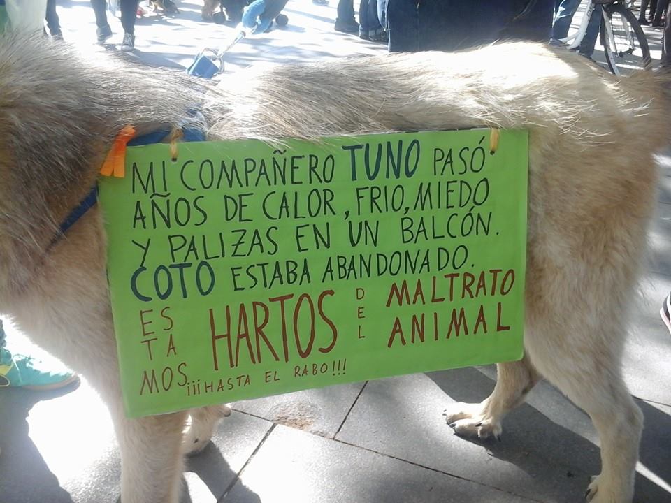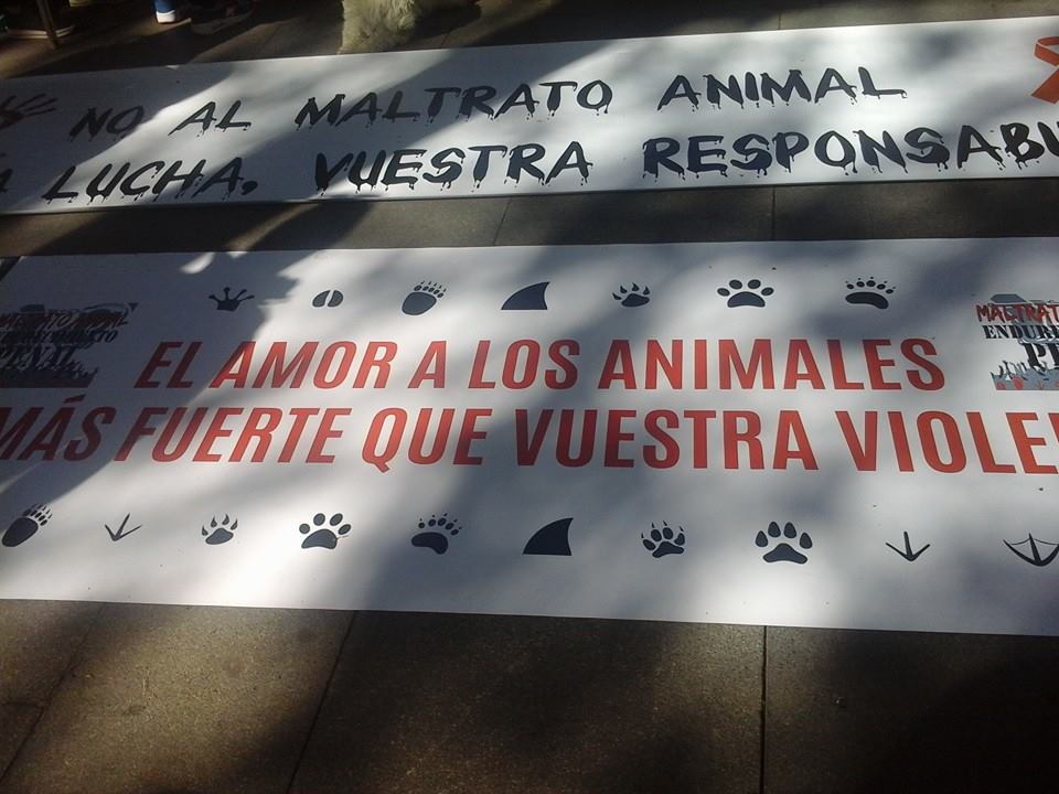Miles de gargantas desgañitándose con lemas tales como, entre otros: «Derechos ya para los animales», «Respeto ya para los animales», «Justicia ya para los animales», «El maltrato animal, al Código Penal», «La Fiesta Nacional, al Código Penal», «Sevilla animalista», «Sevilla libre de maltrato animal», «No están solos, somos su voz», entre un larguísimo etcétera.